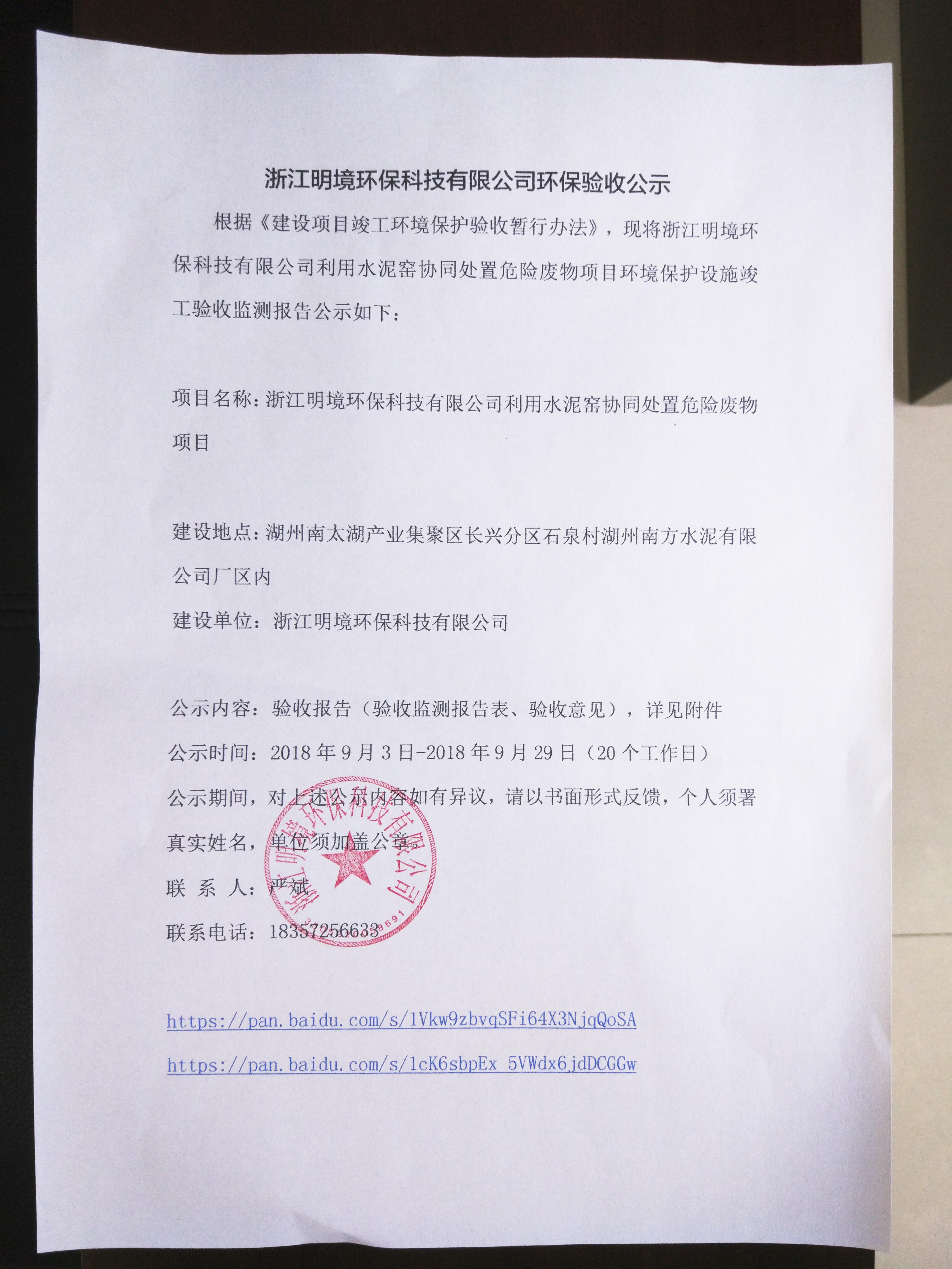 根據(jù)《建設(shè)項(xiàng)目竣工環(huán)境保護(hù)驗(yàn)收暫行辦法》,現(xiàn)將浙江明境環(huán)保科技有限公司利用水泥窯協(xié)同處置危險(xiǎn)廢物項(xiàng)目環(huán)境保護(hù)設(shè)施竣工驗(yàn)收監(jiān)測(cè)報(bào)告公示如下: