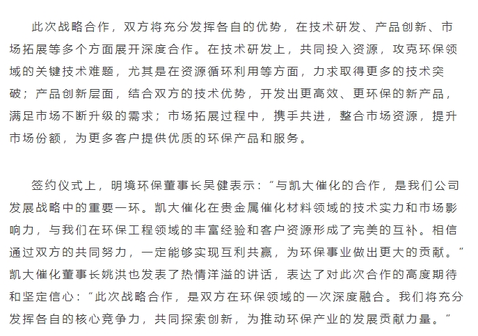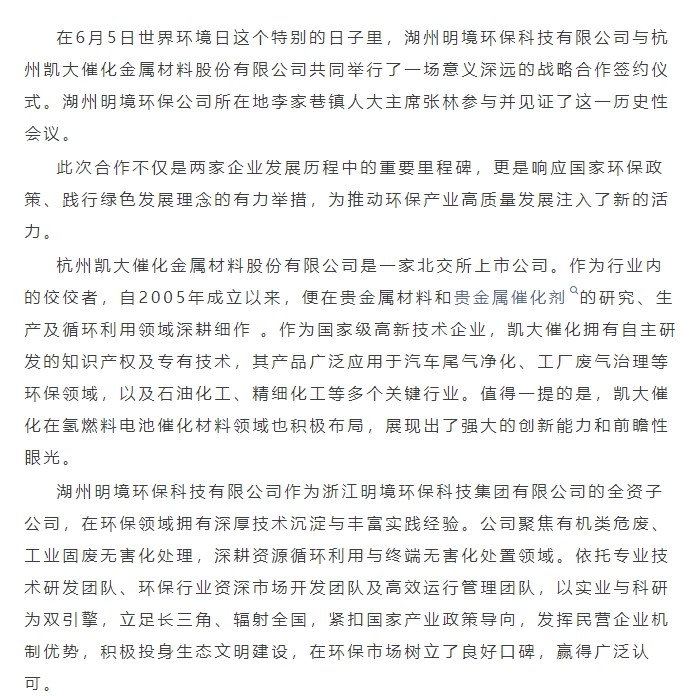 世界環境日,簽約啟新程 | 明境環保與凱大催化達成戰略合作